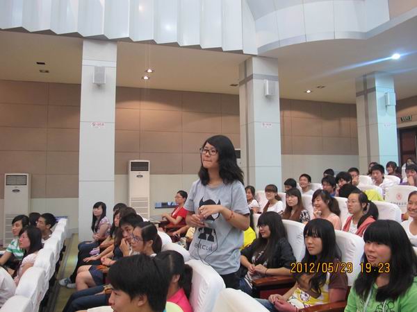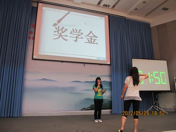 观摩会在合唱《五星红旗》的激昂旋律中拉开了序幕。接着,辅导员刘佩佩就本次团组织观摩会致辞,她指出同学们要以自己的实际行动投入到对党和团组织的热爱中,同时对校员工会到场的嘉宾表示欢迎。随后,观摩会进入了抢答环节,在激烈的抢答过程中,会场气氛逐渐步入高潮,回答正确的同学均获得了奖品。接下来的是互动环节,紧张而又精彩的猜字游戏再次点燃了全场同学的激情。