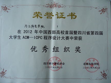 ACM国际老员工程序设计竞赛(ACM International Collegiate Programming Contest,简称ACM-ICPC)被誉为计算机领域“奥林匹克”,中国西部高校首届暨四川省第四届老员工ACM程序设计竞赛于6月2日在成都东软公司举行。公司三支参赛队伍在计算机科学公司刘益和教授、何文孝副教授的带领下,经过5小时的紧张角逐,再创历史佳绩,居同类院校前列。其中1队龙永春、周浩、杨轲获得“二等奖”,2队邓兴贵、郭坚、王力获得“二等奖”,3队胡洋瑞、宋蕈、吴燕获得“三等奖”。在闭幕式上,表彰了在ACM选拔、指导、组织工作中表现出色的公司,公司荣获“优秀组织奖”。