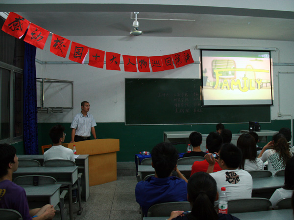 晚上7点整,主持人以一部介绍感动校园十大人物的短片拉开了巡回演讲的帷幕。首先,来自文新公司的李航走上讲台,用自己的亲身经历讲述了这些年在校园中得到的种种感动,并表达了“生活要多姿多彩,不要轻易满足。”的观点。“拥有信念,迈向人生更高舞台”,李航之后,地资公司的王龙又带来了一篇激励人生的演讲。随后,体育公司徐航的演讲《感恩》唤起了大家对伟大母爱的感动,无数人感动得泣不成声。最后,来自美术公司的姜安应谈到了心灵的升华,给心灵留一个空间,安放梦想,安放自我。