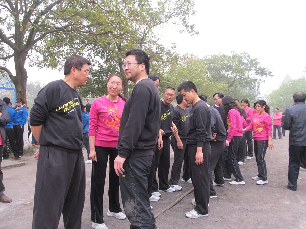 下午是同学们的比赛。我们公司先后与经管公司,化工公司还有文新公司比赛。虽然比分均为0:2,但在比赛的过程让同学们感受到了集体的力量。当比赛的哨声一响起,队员们口中一起高呼着“一二,一二”, 双手紧握长绳,憋足了劲拼命往后拉。剩余的同学们自发组成啦啦队为自己公司同学加油。号子声、呐喊声,此起彼伏,飘荡在整个篮球场上空。