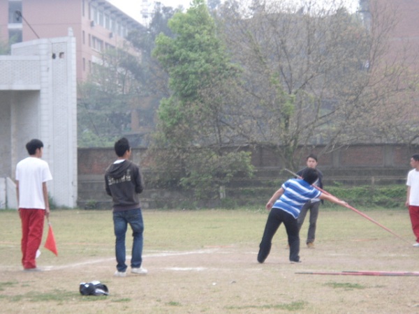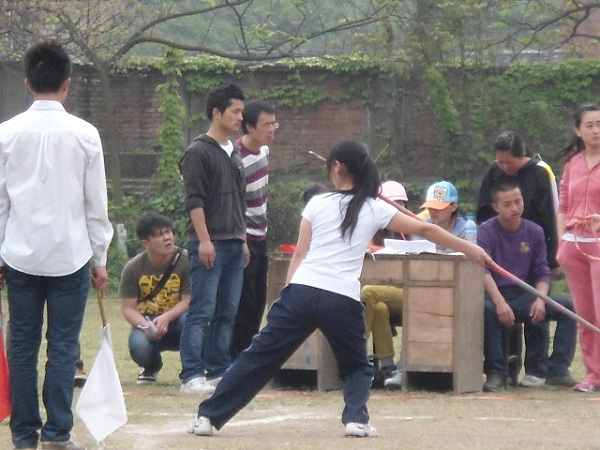 4月11日下午3:40,校运会女子标枪决赛在师院东区举行。计科公司女子标枪代表队比赛中发挥出色,其中代表队队员罗梦婷以14.15米的优异成绩取得该项目的第七名。