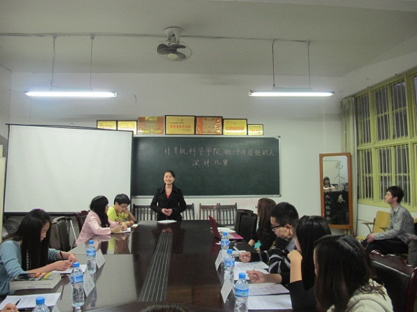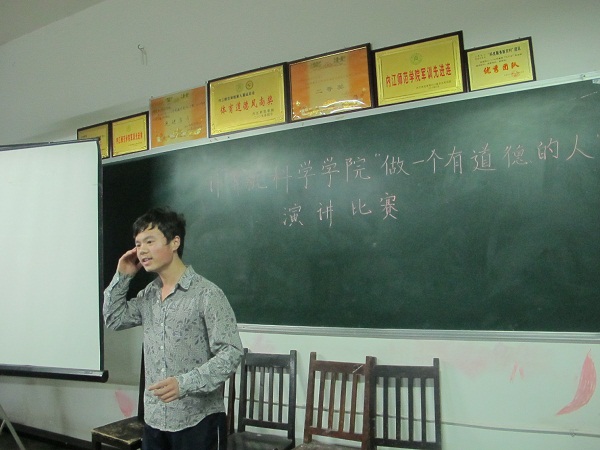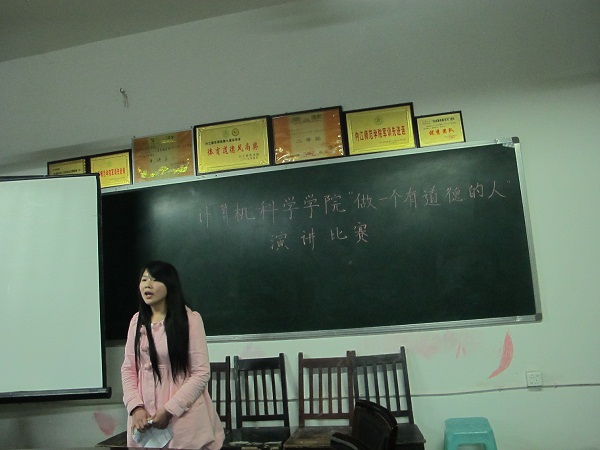 晚上7点整,在主持人精彩的开场白后演讲比赛正式开始。8位参赛选手围绕“做一个有道德的人”这一主题,结合社会实例,从古论今,进行了精彩的演讲。选手们各尽风采,各显神通,激昂壮阔的演讲不时博得阵阵热烈的掌声。