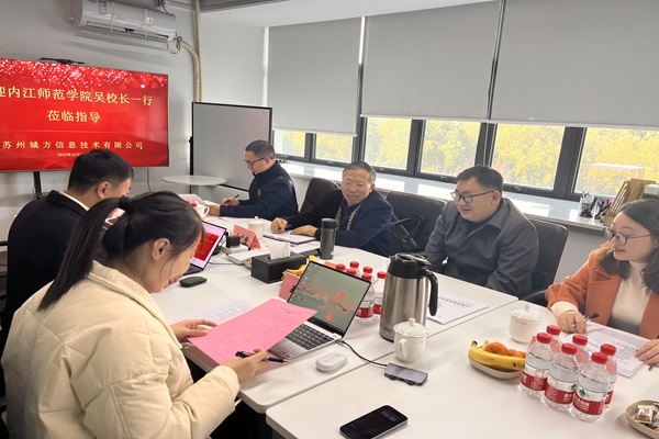 吴董事长一行先后走访了苏州城方信息技术有限公司、苏州市数字城市工程研究中心有限公司、中新佳联国际规划设计与咨询有限公司以及常州电子研究所有限公司,深入了解各个企业的发展历程、业务布局、经营情况、用人需求及远景规划等情况。期间,双方就人才培养、成果转化、实习实践、毕业生就业等方面展开深入交流。