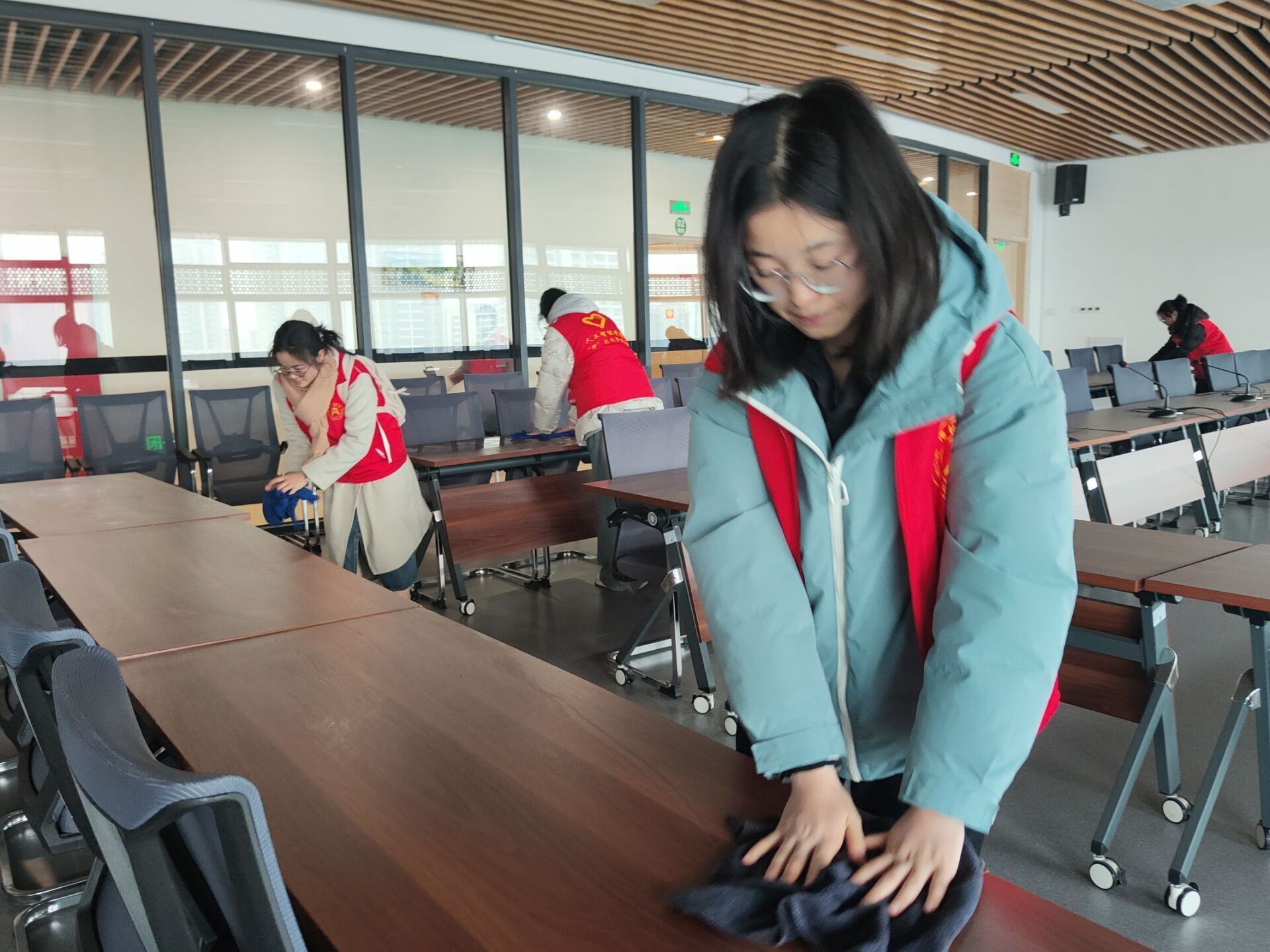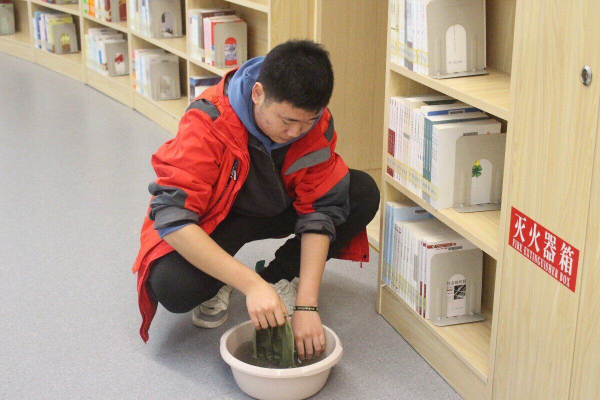 活动伊始,俞守绪老师引导大家追溯3月5日的雷锋纪念日,号召大家学习雷锋精神,强调此次活动的深远意义,希望大家服从指挥,确保安全第一,并鼓励大家积极借阅书籍以充实知识库。随后,服务队队长和图书馆有关工作人员讲解关于本次活动的具体内容和分配方案,整个活动开始如火如荼地进行。所有志愿者在工作人员的指导下,安静有序地进入打扫区域,以四人一小队的分配方式进行书架和桌面的清洁,整个过程井然有序,齐心协力,致力于打造一个洁净的阅读环境。活动中,大家的分工方式颇具创意,采用两人接力的方式,一位志愿者在清扫时,另一位则负责整齐摆放书籍,并挑选所需读物,以此来补充和完善自己的知识体系。这次活动正如人民日报所言:“事有所成,必是学有所成;学有所成,必是读有所得。”莘莘在图书馆不仅完成了身体的锻炼,而且做到了思想的升华。