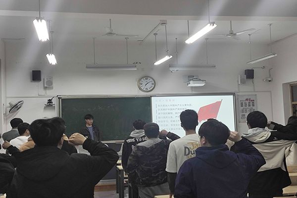 各班团组织生活会在齐唱团歌《光荣啊,中国共青团》中拉开帷幕;随后,认真学习《让雷锋精神绽放时代光芒——奋进新征程,我们怎样学习雷锋》,深刻领悟雷锋精神的深刻内涵。接着,各班团支书带领同学们观看视频《十四届全国人大二次会议开幕会(实况)》和《两会一年间|身边变化看生态,用行动兑现“绿色承诺”》。最后,同学们进行交流研讨。