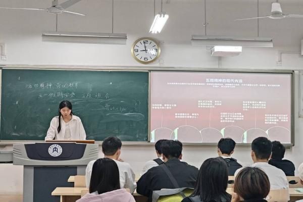 在此次开展的过程中,通过讲述五四运动的历史意义、内容内涵及如何传承五四精神,同学们展开了激励的讨论。青年就应当有理想,有本领,有担当,要传承发扬五四精神,落实五四精神,不能只停留在口号上。要学习五四精神,做一位进步爱国青年,勇于创造,甘于奉献。