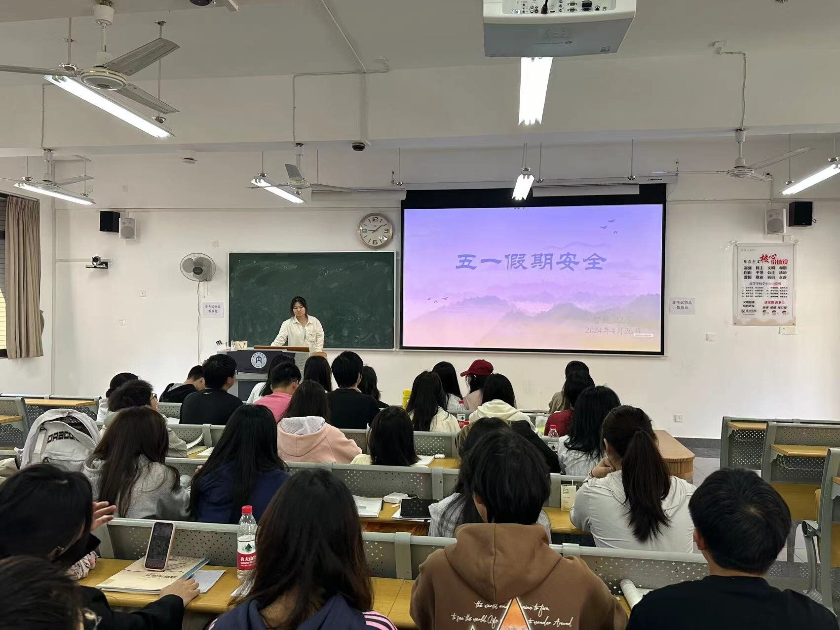 同时“五一“假期临近,由于旅游进入旺季,人员出行大量增加,旅游景点、道路交通、消防和大型公共场所的安全管理压力倍增;加之气象天气多变,汛期灾害风险多,安全生产与自然灾害风险交织叠加,极易引发各类安全事故。各地各部门各单位更要提高思想认识,深刻认识抓好“五一"假期安全防范工作的重要性,深入分析当前安全生产形势,严格落实地方属地管理责任和行业部门监管责任,周密安排、精心部署,对重点区域、重点环节、重点部位组织开展全面安全风险分析、辨识、评估和隐患排查,狠抓安全措施落实,确保节日期间社会安全稳定。班会后同学们反映到“本次放假安全班会不仅是一次安全教育,更是一次思想教育。通过班会,我们应该更加懂得如何保护自己,如何关心他人,如何正确对待假期,这样才能在假期中享受快乐、安全地成长