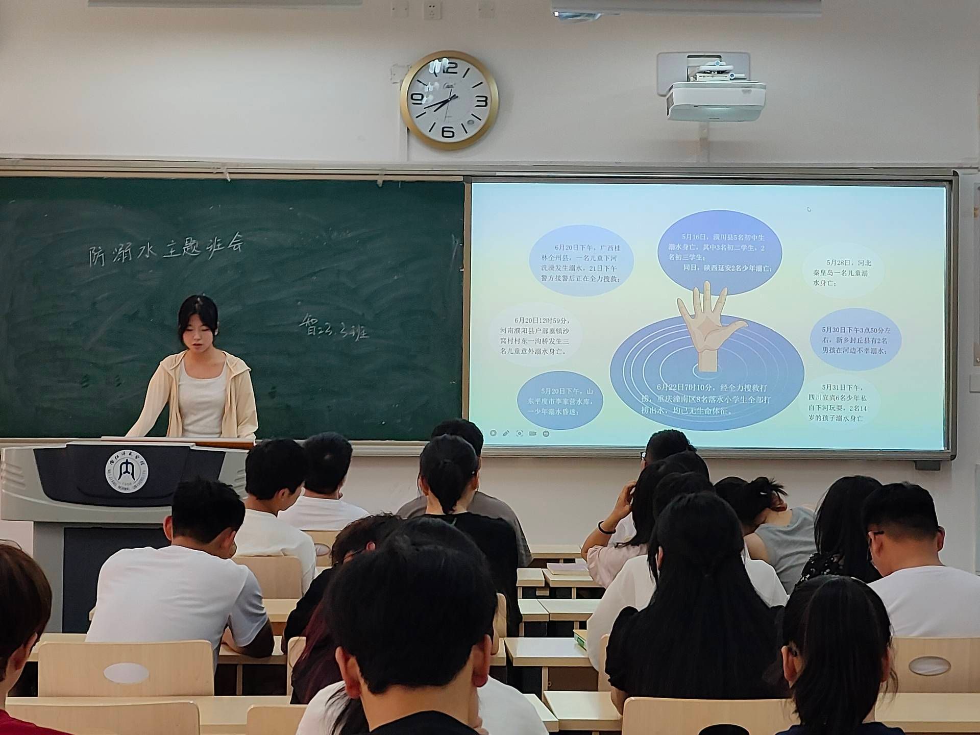 在班会上,各班班长首先强调了防溺水安全的重要性,并结合近年来发生的员工溺水事故,提醒同学们要时刻保持警惕,切勿掉以轻心。随后,各班班长通过PPT演示、视频播放等方式,向同学们普及了防溺水知识,包括如何识别安全水域、如何正确穿戴救生衣、如何在紧急情况下自救和互救等。