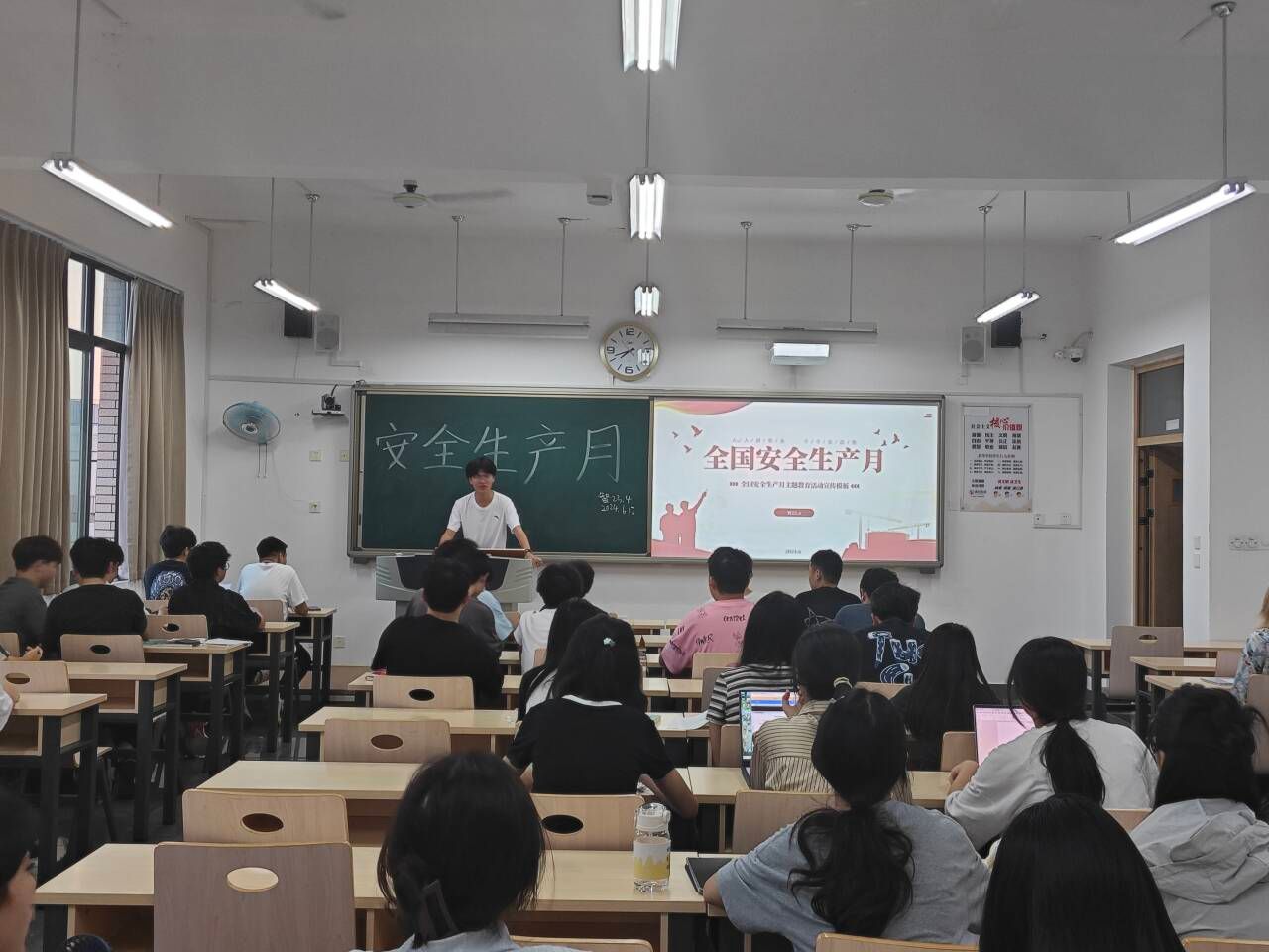 为深入学习宣传贯彻习近平总书记关于安全生产的重要论述,普及安全知识,增强安全意识,公司于2024年6月12日在明德楼各教室开展了“安全生产月”的主题班会。