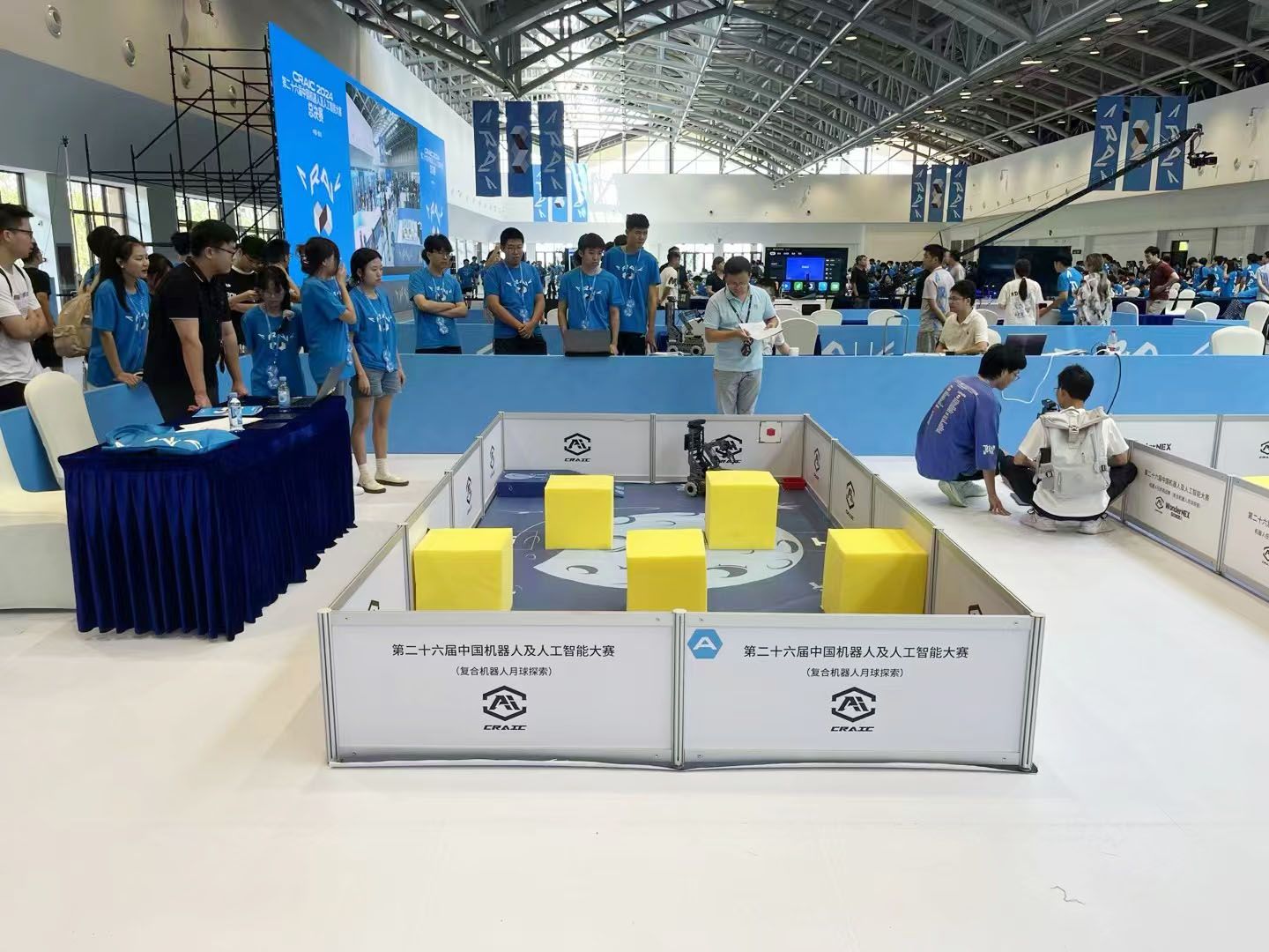 8月25日,第二十六届中国机器人及人工智能大赛全国决赛在江苏宜兴市窑湖小镇举办。来自清华大学、哈尔滨工业大学、浙江大学、国防科技大学、北京航空航天大学、北京理工大学、同济大学、华中科技大学等208所高校的407支队伍1300余名选手从选拔赛中脱颖而出,齐聚宜兴围绕自动驾驶、机器人、人工智能等领域的前沿技术应用与实践进行技术交流、切磋并展开激烈对决。太阳成集团tyc33455cc两支队代表参加了复合机器人月球探索赛道,该比赛主要围绕复合机器人及人工智能领域开展,通过对无人驾驶、三维抓取、自主搬运等功能的实现,锻炼参赛队员对建图导航、路径规划等复合机器人及人工智能技术的综合应用能力。在太阳成集团tyc33455cc白勇博士指导和带领下,赵娇、吉巴马红、黄佳萱荣获国家级一等奖,廖添添、文荣、唐雨荣获国家级二等奖。