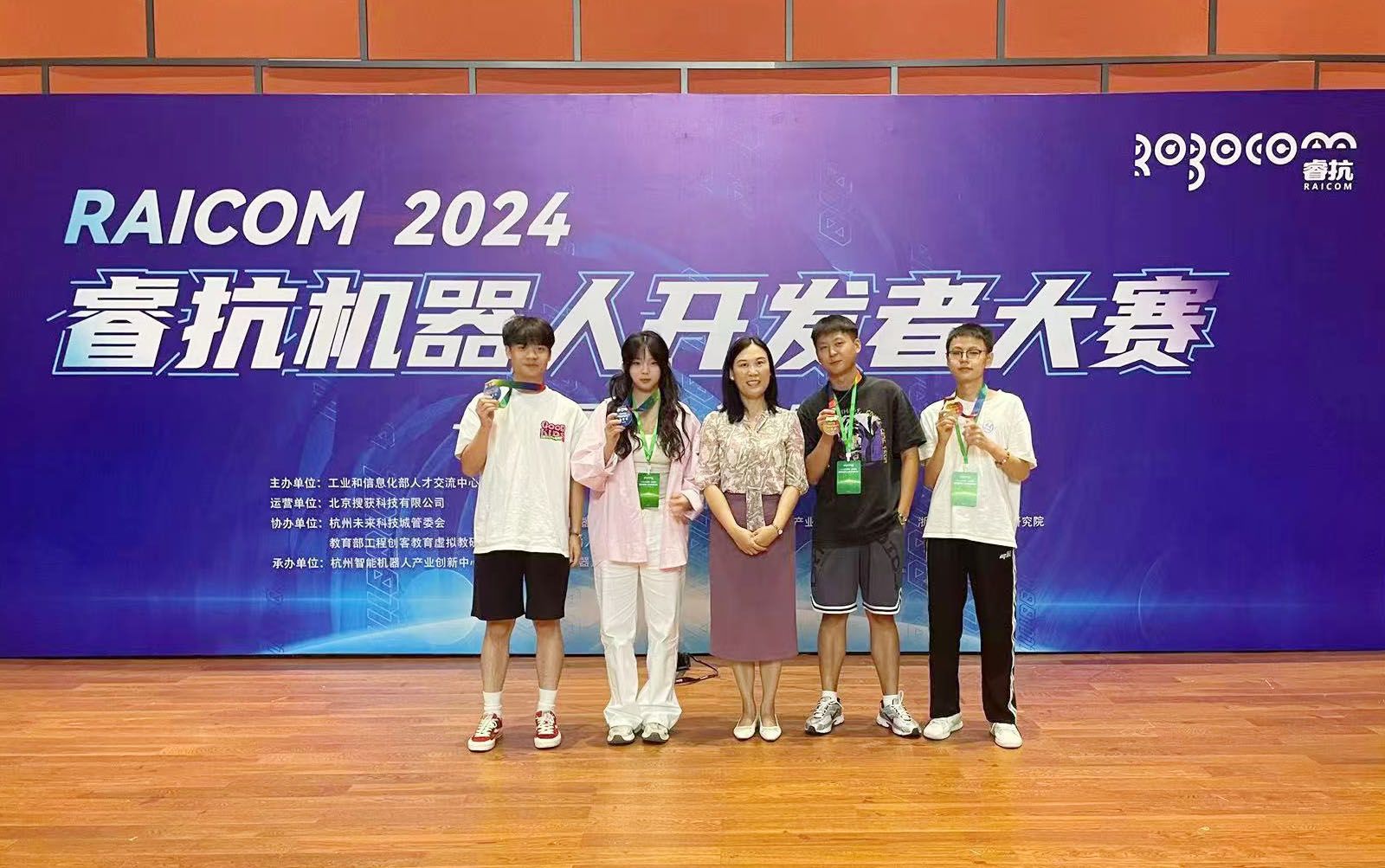 同日,2024 睿抗机器人开发者大赛 CAIR 工程竞技赛道“魔力元宝”国赛在杭州国际会议中心举行。该赛事分为工业型和服务型两大竞赛项目,太阳成集团tyc33455cc两支代表队参加了服务型机器人赛道。服务型机器人赛道要求选手通过服务型机器人完成巡游介绍,迎宾引导,语音讲解,智能交互等功能。在太阳成集团tyc33455cc刘丽娟教授的指导和带领下,员工们在比赛中充分发挥了自己的专业知识和技能,展现出了扎实的功底和出色的创新能力。最终杨桓鉴、李琰斌获得国家级一等奖,陈吉、伍雪莲获得国家级二等奖。