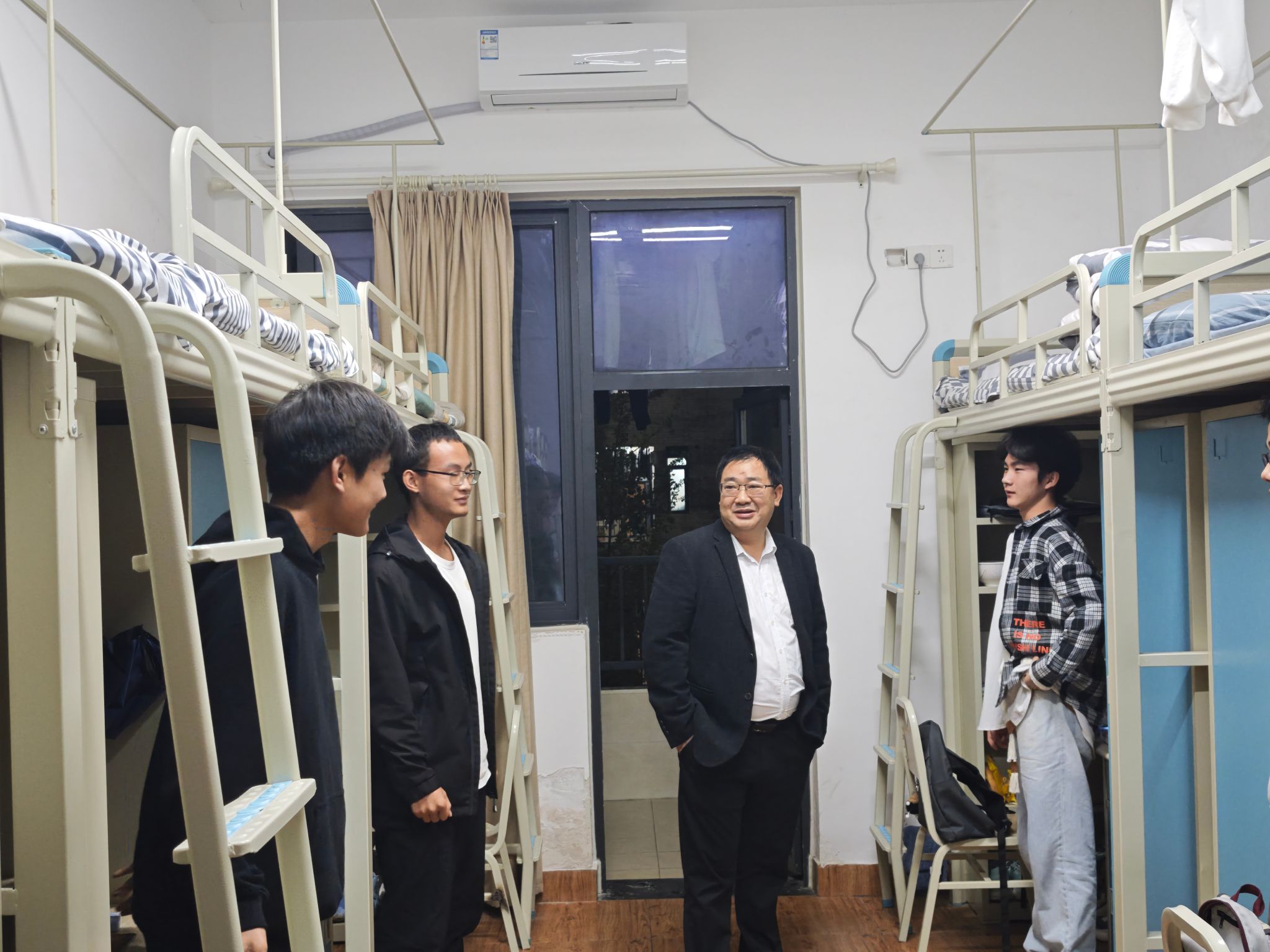 2024年11月6日晚,公司党委书记唐年庆先走访2024级3班各员工寝室,与同学们进行了亲切的交流;随后在格致楼B311参加了2024级3班“全民消防,生命至上”主题班会。之后,唐书记给全体员工上了一堂以学习宣传贯彻党的二十届三中全会精神为主题的党课。