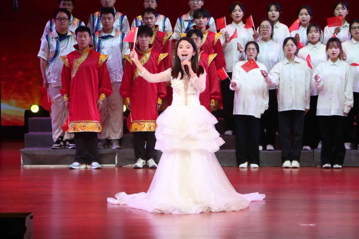 第三篇章《梦想启航》在走秀《红》中拉开帷幕,模特们一身红装,光彩夺目,让人目不暇接,赢得了观众们的掌声与尖叫。再是精彩绝伦的朗诵《致内师》,他们或激昂慷慨、或深情款款、或温婉细腻,表达了对内师的热爱和祝福。而后独唱《像风一样》用激情豪迈的歌声让观众们仿佛置身于“像风一样自由”的境地之中。最后是大合唱《我爱你中国》,饱含深情的歌词抒发了对祖国的无限热爱和崇高敬意,也引发了台下观众的强烈共鸣。