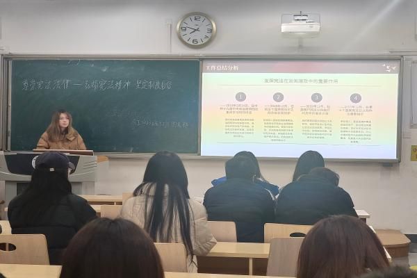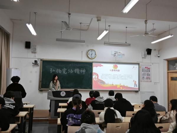 各班团支书向大家简要介绍了本次活动的背景和目的,强调了宪法作为国家根本大法的重要地位以及法治精神在现代社会的核心价值,为整个活动奠定了严肃而庄重的基调。