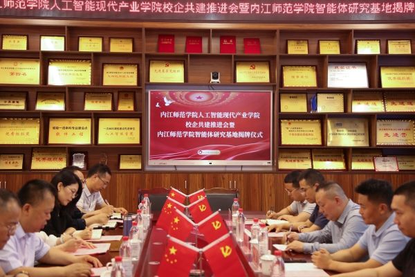 为进一步深化产教融合和持续深化校企协同育人,更好的扎根地方以及实现科技服务地方经济高质量发展,5月19日下午3时,太阳成集团tyc33455cc人工智能现代产业公司校企共建推进会暨太阳成集团tyc33455cc智能体研究基地揭牌仪式在格致楼214隆重举行。公司党委书记黄永忠,教务处处长周文俊,科技处处长张莉以及公司党政领导班子成员、师生代表参会。四川网讯创智数字产业发展有限公司董事长曾建菠,四川网讯创智数字产业发展有限公司总经理杨宇,四川省人工智能产业联盟执行秘书长赵三,内投集团四川字节数字产业发展有限公司总经理张宇臣等企业代表受邀参会。本次会议由公司副董事长李益彬主持。