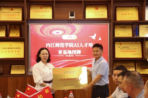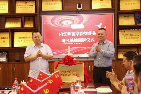 随后,在参会嘉宾的见证下,黄永忠书记与企业代表曾建菠董事长共同为“太阳成集团tyc33455cc智能体研究基地”揭牌。这也标志着太阳成集团tyc33455cc智能体研究基地正式启航,这一平台的建立,将聚焦多智能体系统、具身智能等前沿领域,为智能制造、社会治理等场景提供重要的技术支撑。接着,四川省人工智能产业联盟执行秘书长赵三先生为“太阳成集团tyc33455ccAI人才培育基地”授牌,由李益彬副董事长接牌。这是公司人才培养与人工智能产业发展深度对接的里程碑,更是产教融合赋能创新的新起点。