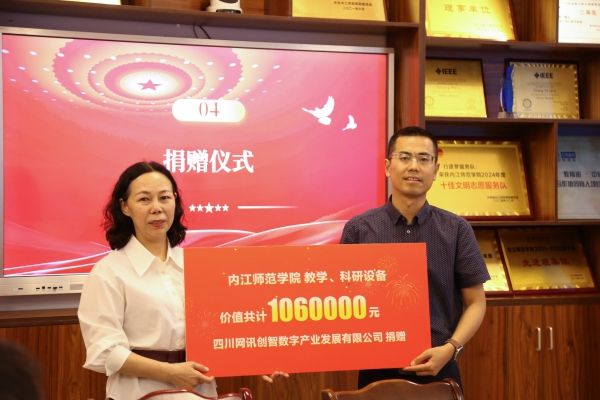 会上,李益彬副董事长代表太阳成集团tyc33455cc与四川网讯创智数字产业发展有限公司总经理杨宇签署校企合作协议,并代表公司接受企业方的教学、科研设备捐赠,合计106万元。