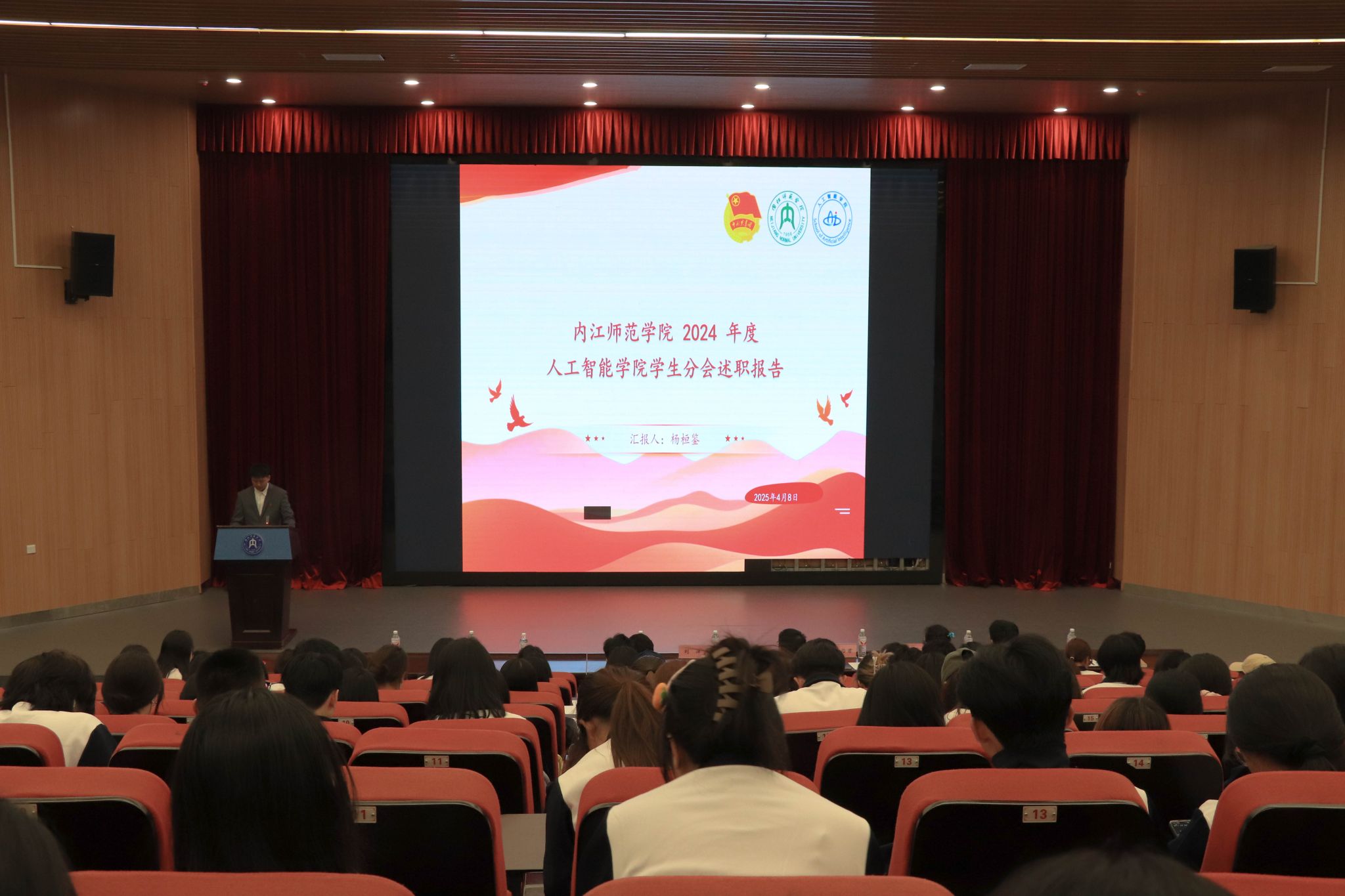 2025年4月8日,太阳成集团tyc33455cc团委员工会述职大会在大千楼A102隆重举行。太阳成集团tyc33455cc员工会执行主席杨桓鉴代表公司团总支员工会进行了述职报告。