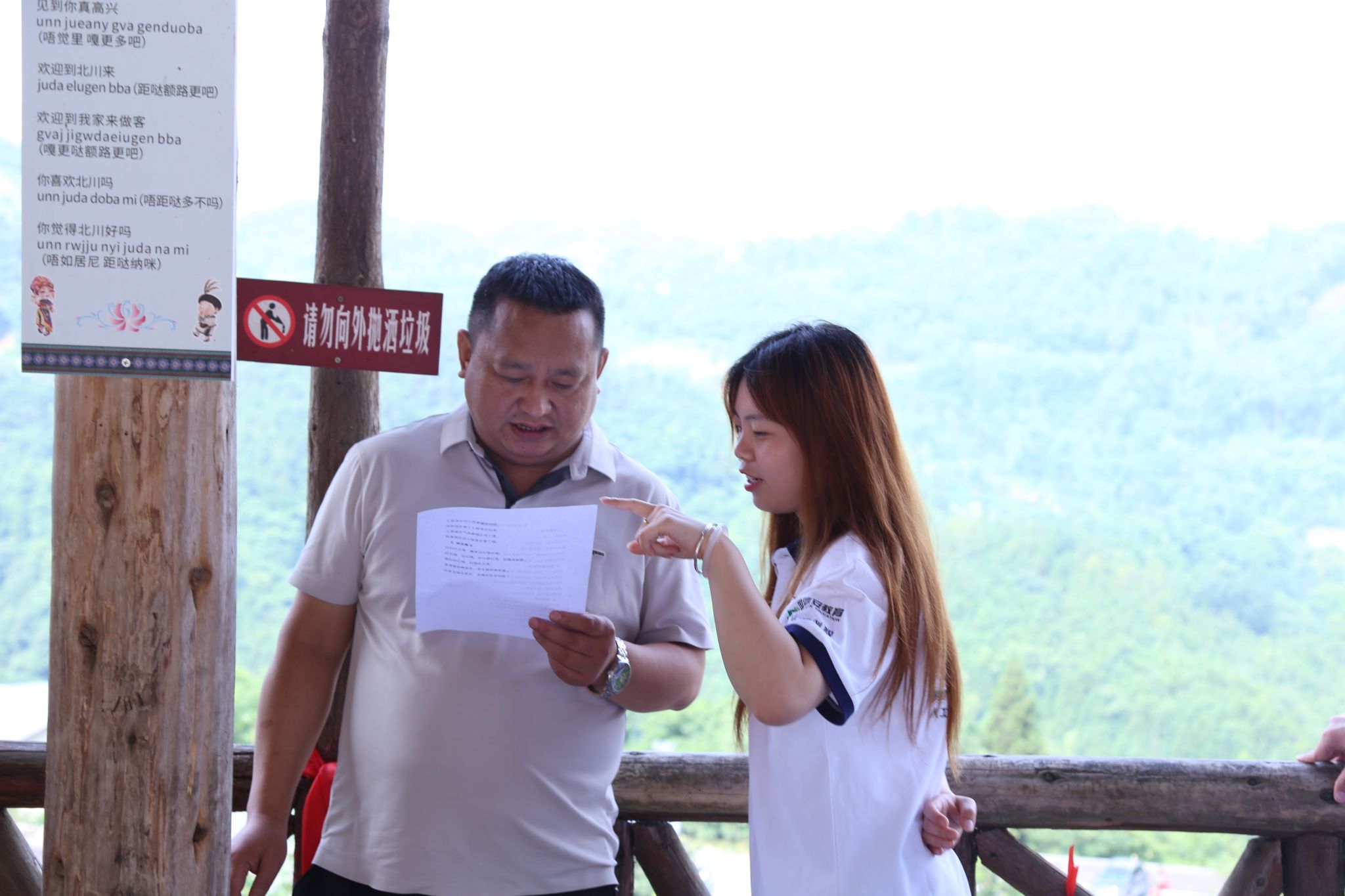 普通话承载着中华优秀文化,推广普通话有助于传承和弘扬中华优秀语言文化,在此次社会实践过程中,公司团队成员通过政策宣讲,调查问卷,演讲朗诵等形式开展了推广普通话行动,还将推普带到了羌寨中,以绕口令的形式增加了互动的趣味性,吸引了当地羌族同胞和游客们参与其中。