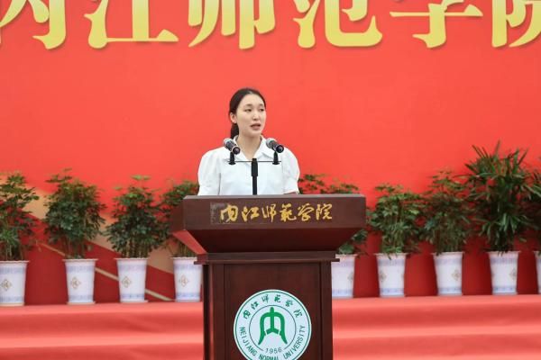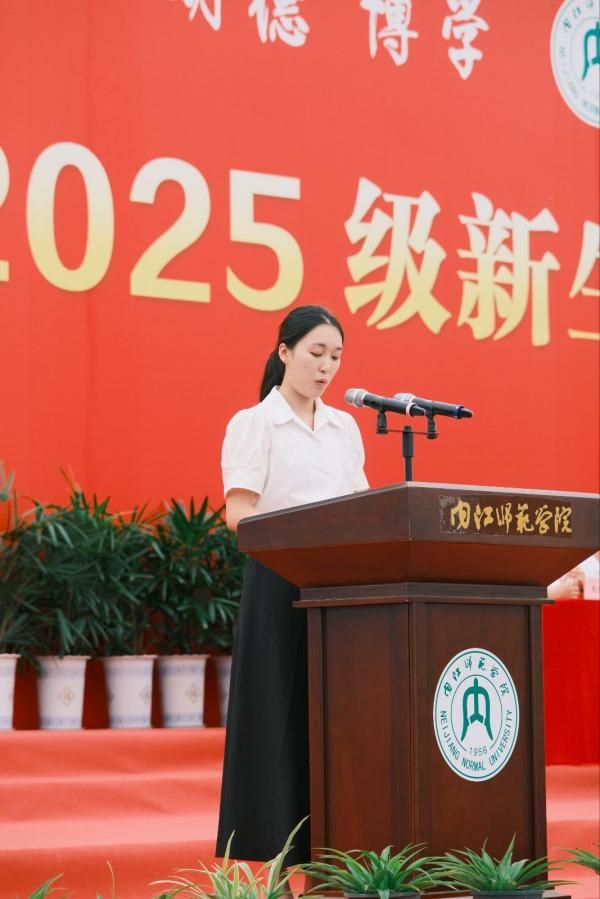陈霜雪在发言中首先对2025级新生的到来表示热烈欢迎,她回忆起自己两年前初入校园时的不安与迷茫,感慨是内师的包容与温暖让她迅速找到了归属感。她认为大学是不断提问、求索并找到自我的旅程,她分享了自己在大学中通过课堂学习、参与辩论赛、社会实践等活动不断成长的经历。
