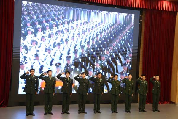 退伍军人们迈着铿锵有力、整齐划一的步伐登上了舞台,一首朗诵《光年足迹》,以代码、算法呼应长征,回顾先辈壮举,一曲《强军战歌》更是将整场活动推向了最高潮,他们坚毅的眼神与铿锵旋律交织,展现了新时代军人的风采,让“强军强国”的信念在每个人心中激荡。
