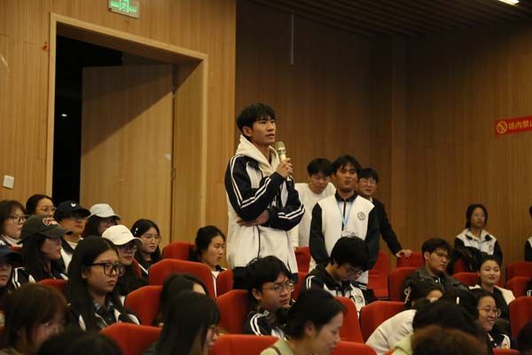 活动伊始,全场师生肃立,齐声高唱中国共产主义青年团团歌《光荣啊,中国共青团》,激昂的歌声彰显了青年的朝气与忠诚。俞主任围绕“青年与红色传承”,结合公司学子暑期“三下乡”社会实践的经历,生动表达了红色基因的传承,从未间断,也从未远离。以新冠期间无数“90”后,“00后”们不畏艰险,冲锋在前的奉献精神来激励同学们要胸怀“天下兴亡,匹夫有责”的使命和担当。最后俞主任寄希望于全体团员们,要以此次团日活动为契机,以青春、奋斗之我,为中国式现代化贡献智慧力量。
