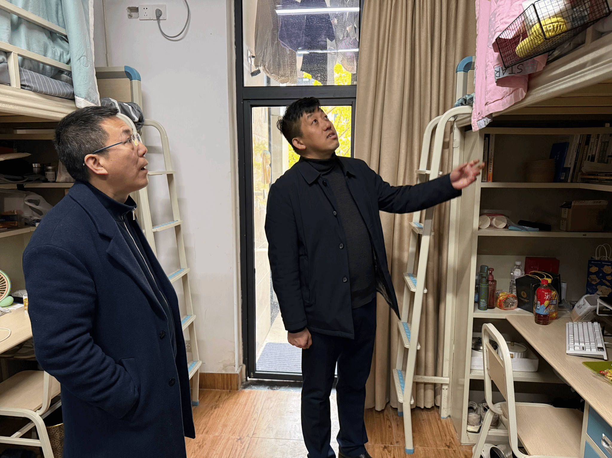 为切实筑牢校园安全防线,全面排查员工宿舍消防安全隐患,2025年11月26日晚21:00,公司党委副书记、经理汪在荣,党委副书记蒋明芳、副经理何文孝、副经理刘丽娟分组带领学工办全体老师、各班班主任以及员工干部深入员工宿舍开展消防安全专项检查,并同步开展走访慰问,倾听员工心声,传递公司关怀。