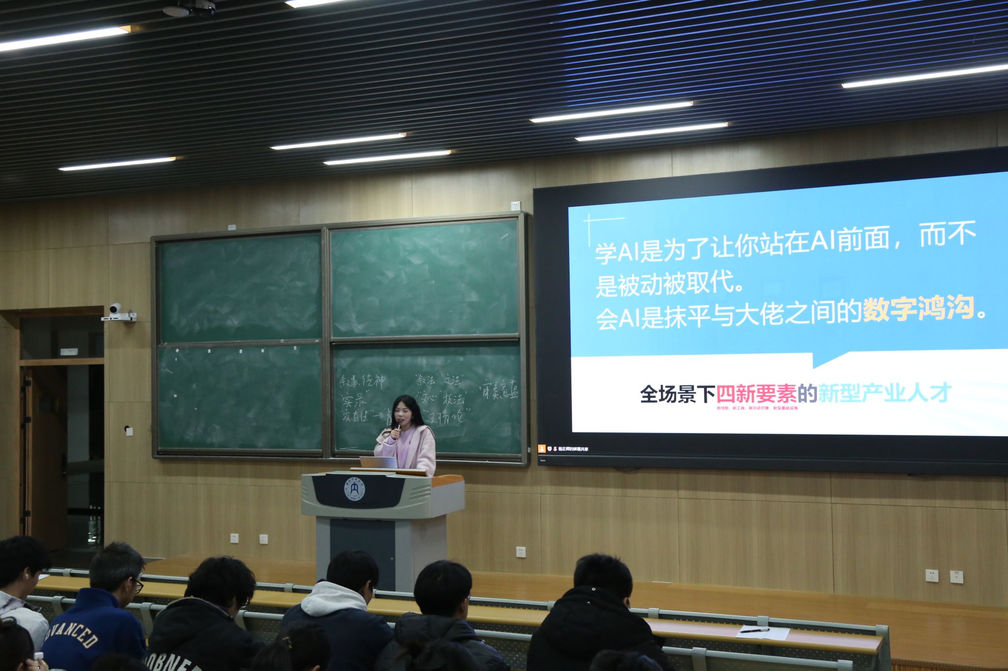 讲座围绕AIGC发展趋势、产业机遇挑战展开,解析AI普惠时代及新职业技能、岗位重塑,探讨新质生产力给人工智能带来的赋能与机遇。现场强调“学AI是为站在AI前,而非被取代;会AI可抹平与大佬数字鸿沟”,助力员工成长为全场景下四新要素的新型产业人才,为员工在AIGC浪潮中寻机遇、明路径提供有力指引。为进一步推动同学们将AIGC知识转化为实践能力,数智工坊同步开启招募。数智工坊是连接理论与实践的桥梁,在这里,同学们能接触前沿AIGC工具,跟随专业导师拆解实战案例,从需求分析到成果落地全流程参与。讲解人员呼吁同学们,别再让对AI的热情停留在观望,加入数智工坊,一起用技术点亮创意,在AI浪潮中抢占先机,书写属于自己的数智成长故事!