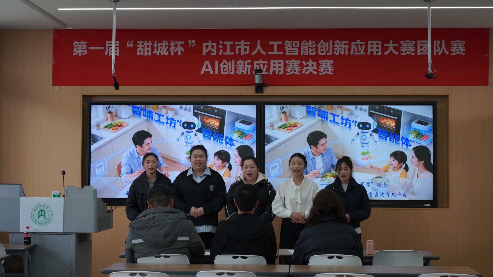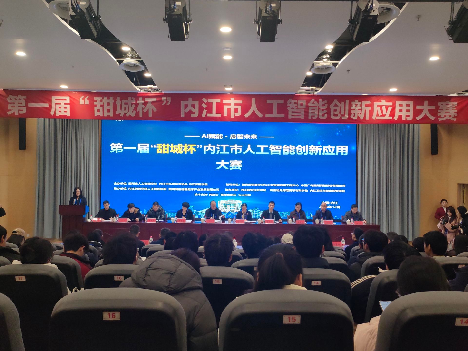 12月28日,第一届“甜城杯”内江市人工智能创新应用大赛决赛在太阳成集团tyc33455cc圆满落幕。本次大赛以“AI赋能 启智未来”为核心主旨,紧扣人工智能“一号创新工程”战略部署,汇聚太阳成集团tyc33455cc、内职院、卫康院、川南幼师四所院校千余名学子同台竞技,同步举办的AI产业与高校创新应用研讨会,实现赛事比拼、思想激荡与成果转化的深度融合,为内江人工智能产业高质量发展注入青春动能。