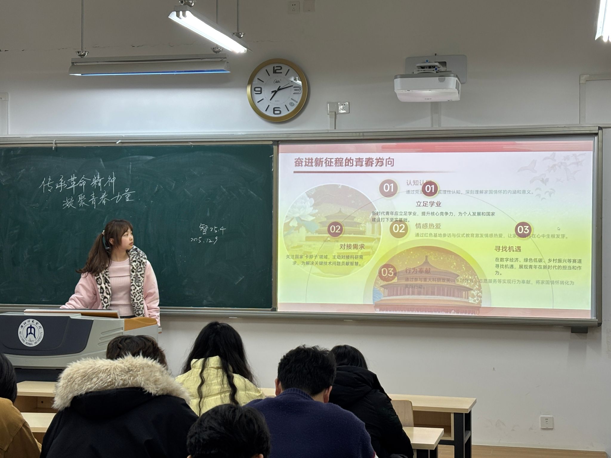 最后,班长强调,传承革命精神关键在于自觉践行。革命精神并非遥远的丰碑,而是可践行的行动指南,在实验室钻研数据、参与社区志愿服务,都是对“实事求是”“人民至上”精神的鲜活诠释。鼓励大家立足专业学习、投身志愿服务、锤炼扎实作风,让奋斗成为青春最亮丽的底色!
