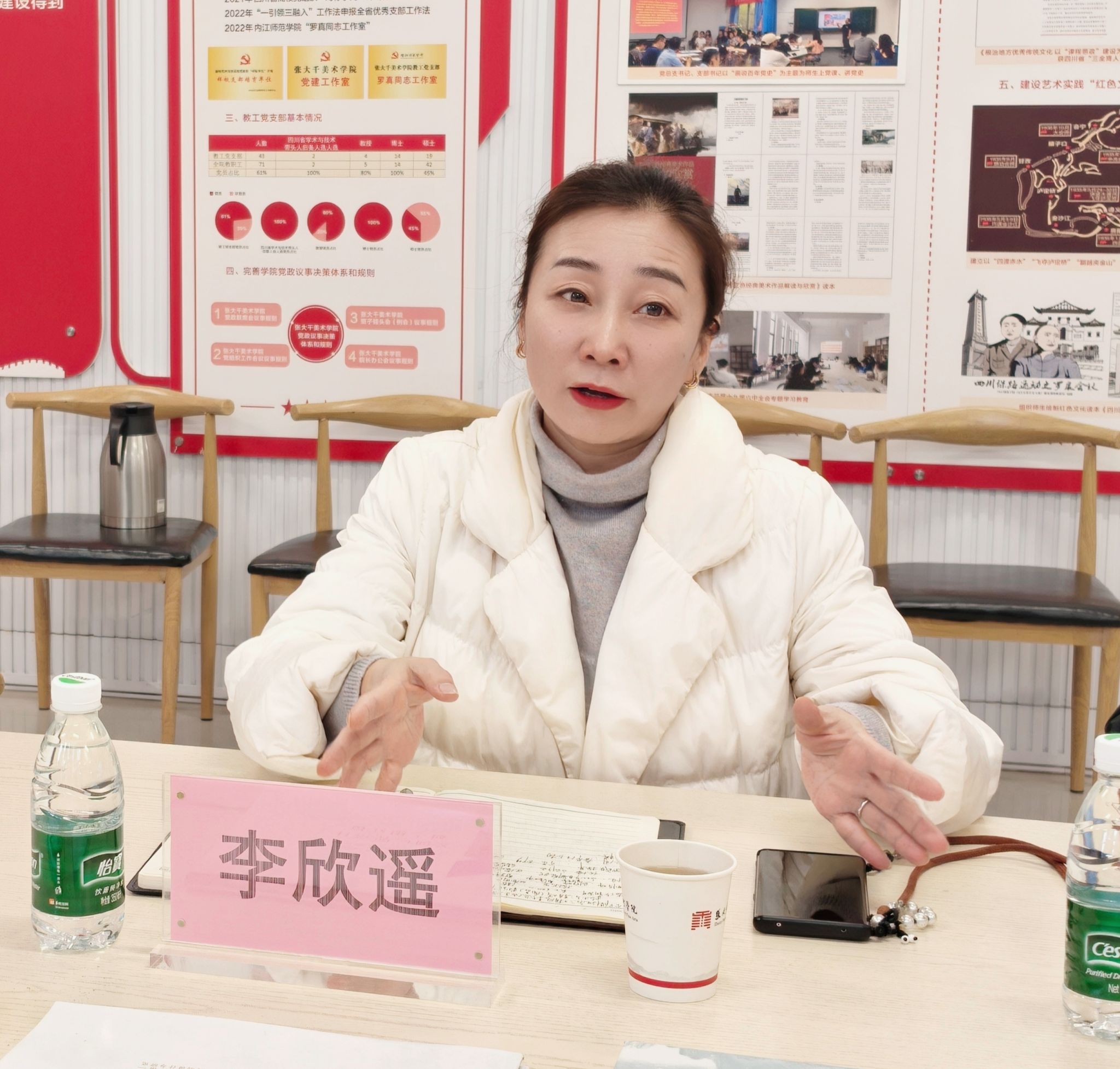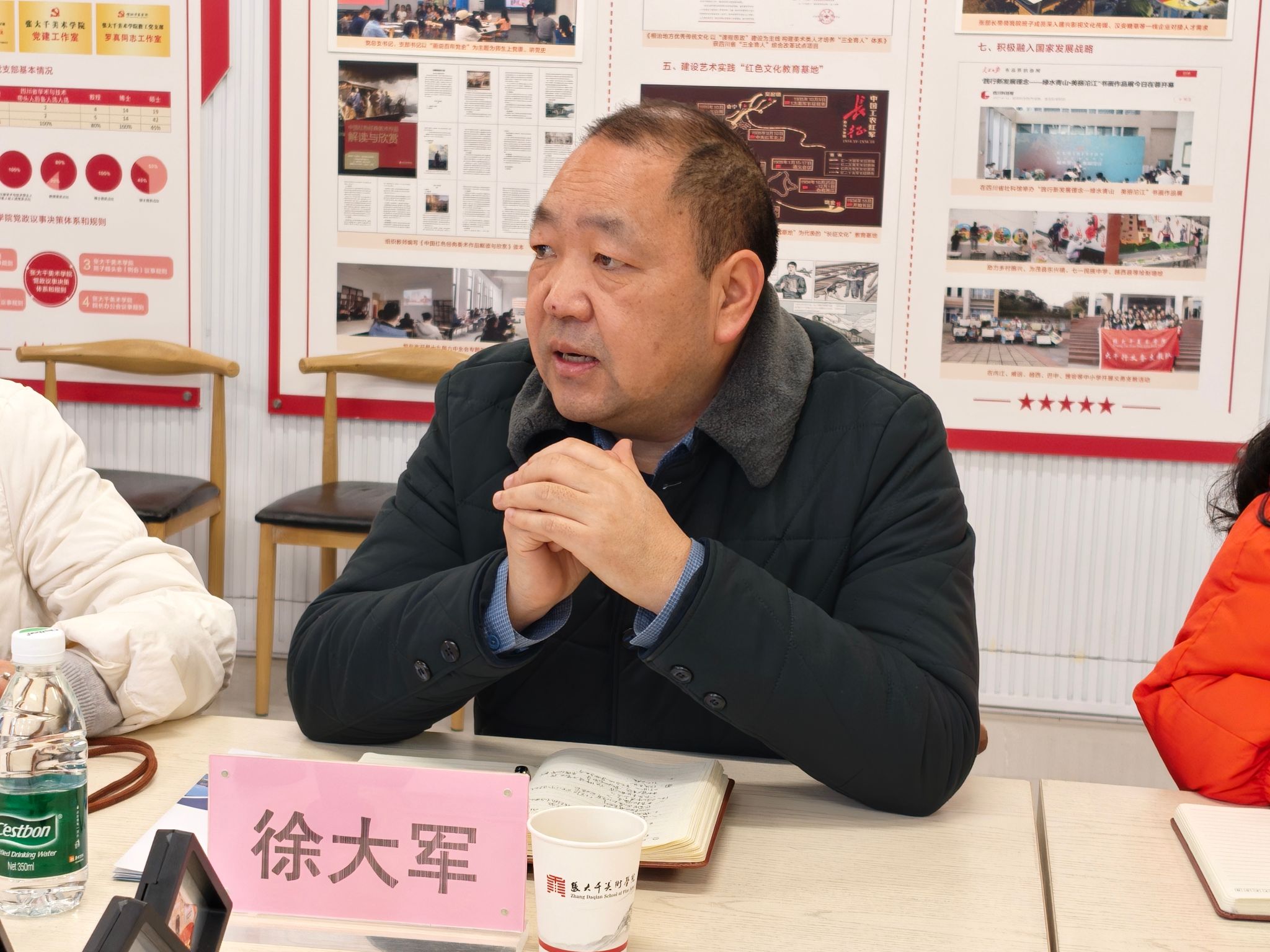 出席本次座谈会的嘉宾包括四川网讯创智数字产业发展有限公司总经理杨宇、项目经理陈洁,以及来自各公司的领导:张大千美术公司党委书记李欣遥,范长江新闻公司党委书记徐大军,公司党委副书记、纪委书记苟全登,文公司党委副书记、纪委书记周琼,张大千美术公司党委副书记、纪委书记汪隆友。此外,还有各公司负责就业工作的辅导员代表参与其中,共同探讨如何通过校企合作,为员工提供更广阔的发展空间。