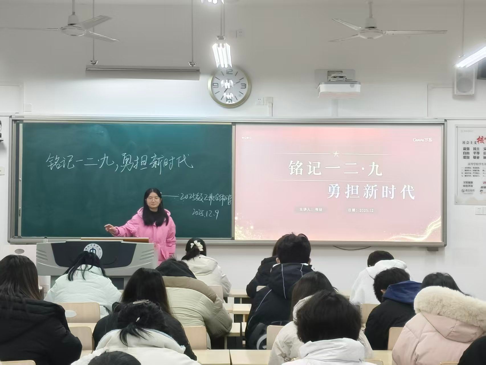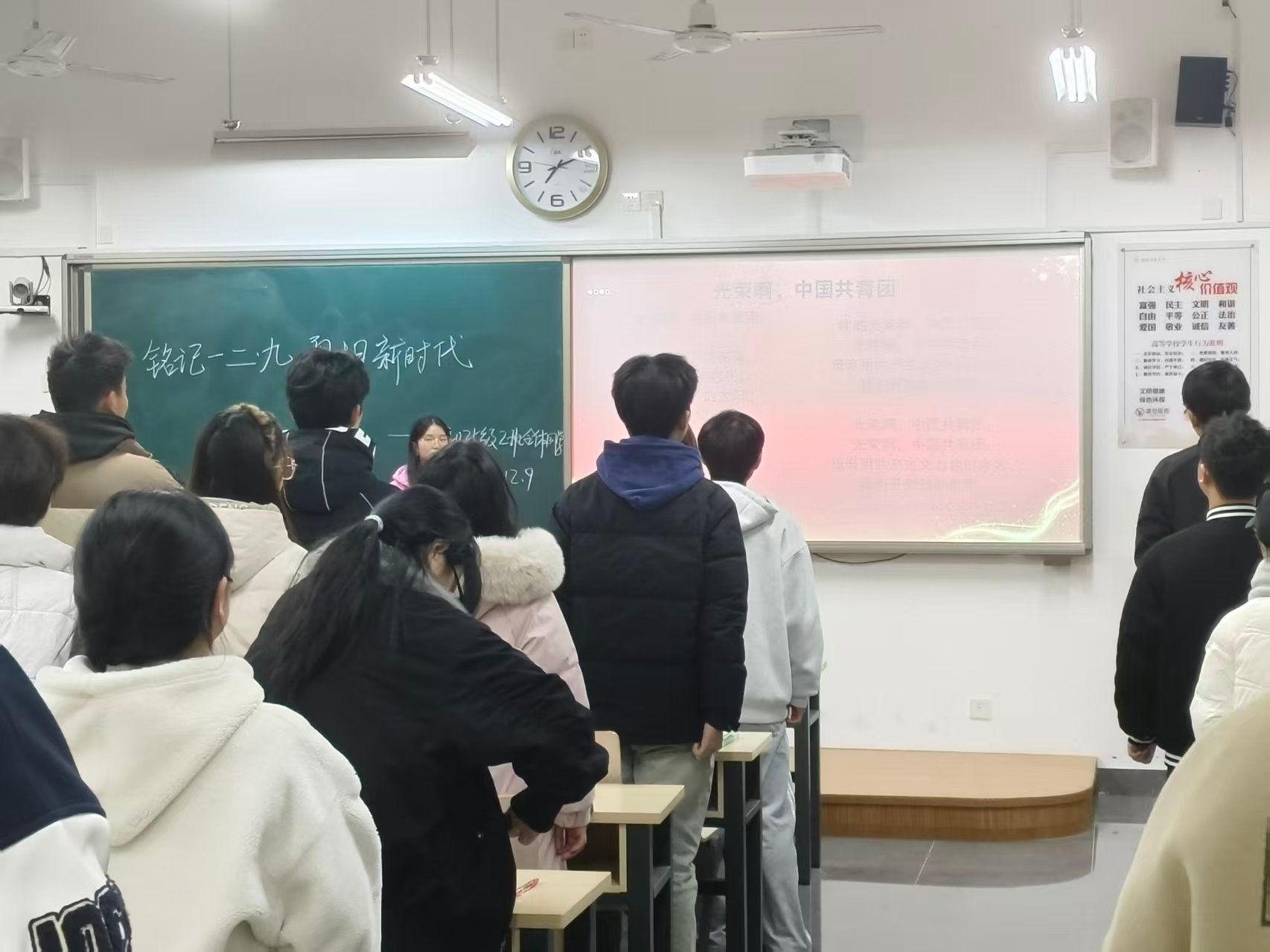 本月团课紧紧围绕“尊崇宪法权威、铭记革命历史、珍爱和平发展、勇担时代使命”等主题展开。各团支部通过齐唱团歌、重温入团誓词、观看专题影像、专题学习分享、小组研讨交流等方式,引导团员青年在沉浸式学习中坚定理想信念,在历史回望中汲取奋进力量。围绕宪法精神与法治思想、志愿服务与责任担当、一二·九精神的时代价值以及和平发展的深刻内涵,同学们结合专业学习与成长实际,展开深入思考与交流,进一步强化了使命意识与行动自觉。