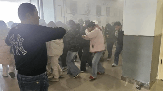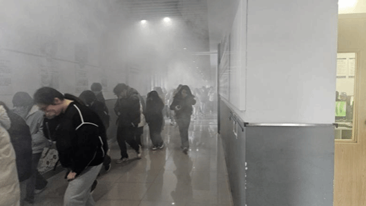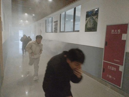 10时20分,尖锐的消防警报划破格致楼的安静——演练模拟教学楼突发“火情”,走廊瞬间被模拟烟雾笼罩,能见度大幅降低。教室内,师生闻声即动:俯身弯腰、袖口掩住口鼻,沿墙体右侧疏散标识快速有序撤离;通道处,工作人员定点引导,提醒“保持间距、不要奔跑”,避免拥挤滞留。从警报响起到全员在楼外安全区域集结,全程仅用时5分钟,撤离流程紧凑高效。