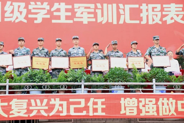 汇报表演拉开帷幕,在庄严的升旗仪式后,伴随着分列式进行曲,在教官的带领下,公司学子列着整齐的队伍,口令铿锵有力的走过主席台,用过硬的素质接受公司领导的检阅。接下来是军体拳方阵的表演,同学们规范的动作,抖擞的精神,挺拔的身姿,充分展现了公司学子自强不息的精神风貌。表演结束后,校领导宣读获奖集体和个人名单,并对在军训中表现优秀的集体和个人进行了表彰。员工代表在发言中表示,要将部队的纪律作风带到今后的学习生活中,做到自信、自强、多技、多能。