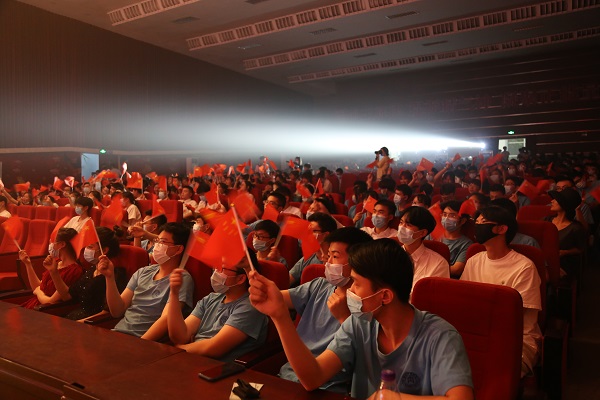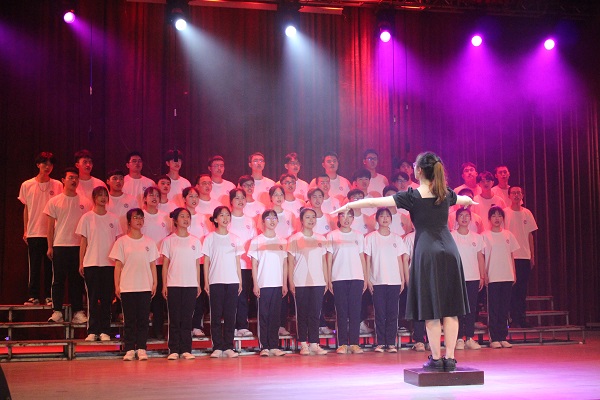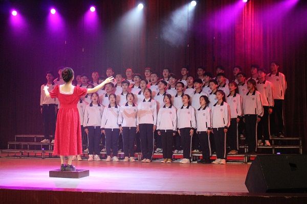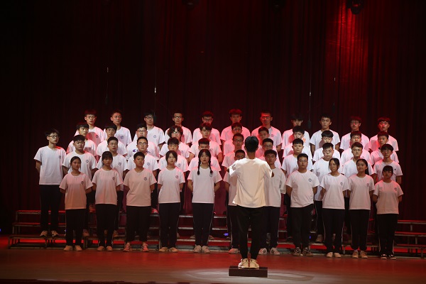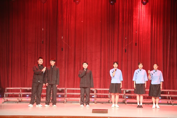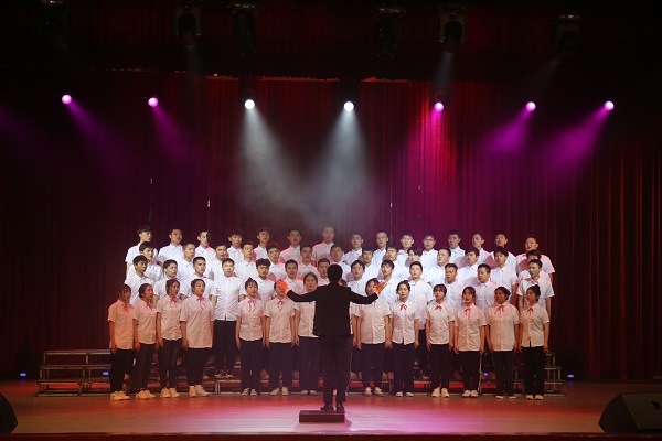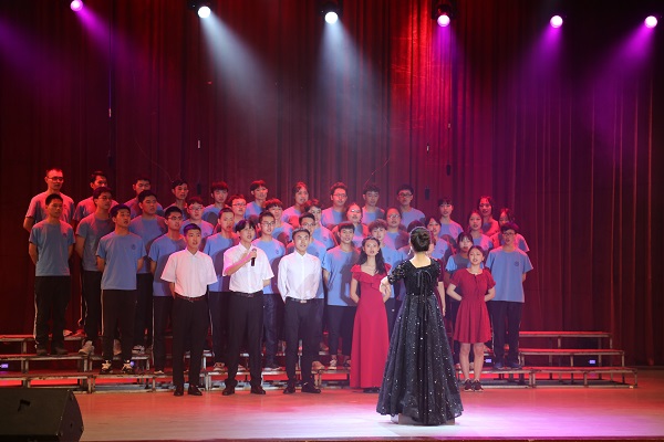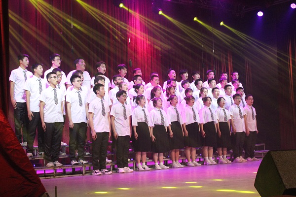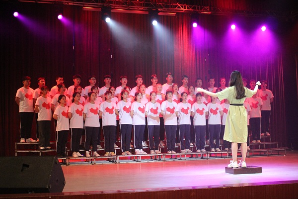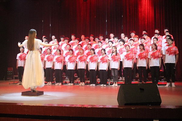 《相亲相爱》、《灯火里的中国》、《歌唱祖国》,演绎出中国的美丽,万家灯火的祥和与幸福,以及人与人之间的融洽氛围,一句句悦耳的歌声更道出对祖国的真挚感情。聆听着《红旗飘飘》、《迎风飘扬的旗》、《我和我的祖国》,同学们默契地跟着旋律摇动手中的红旗。摇摆的小红旗带给人们的是喜悦,是见证中国兴盛、繁荣的喜悦,是百年奋斗,度过峥嵘岁月迎来中国崛起的喜悦,是身为中国公民的自豪。细品《没有共产党就没有新中国》、《我爱你中国》、《国家》,我们听出的是崛起的中国在歌唱,歌唱光荣的党。是党在歌唱,歌唱昌盛的中国。同时,更让我们坚信必须毫不动摇坚持党的领导。一曲《七月赞歌》,礼赞了开天辟地、敢为人先的红船精神,感叹了百折不挠、自强不息的长征精神,称颂的是党的百年光辉岁月。“让我们担负起振兴祖国的历史责任,用坚定的信心支撑起中华民族的精神脊梁,为实现中华民族的伟大复兴努力奋斗。”铿锵有力的话语背后是对同学们的激励和号召,这句话也意味着本次晚会就此落下帷幕。