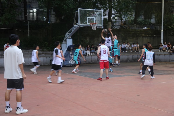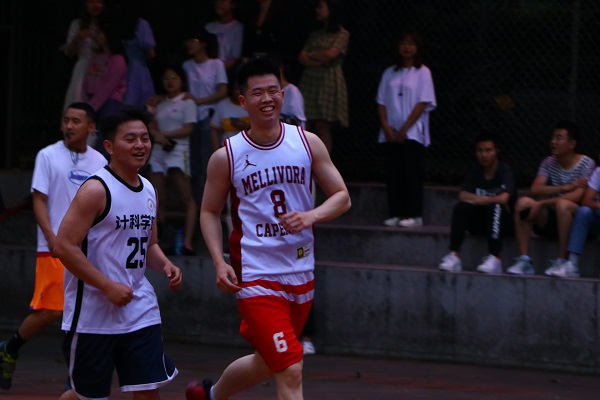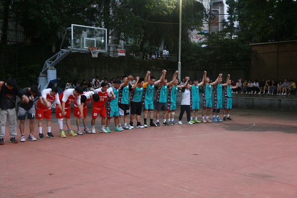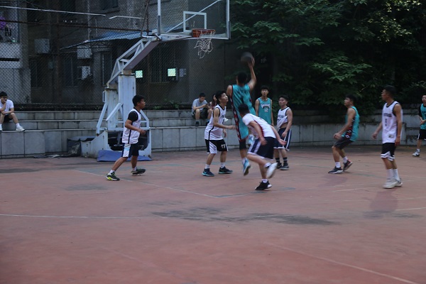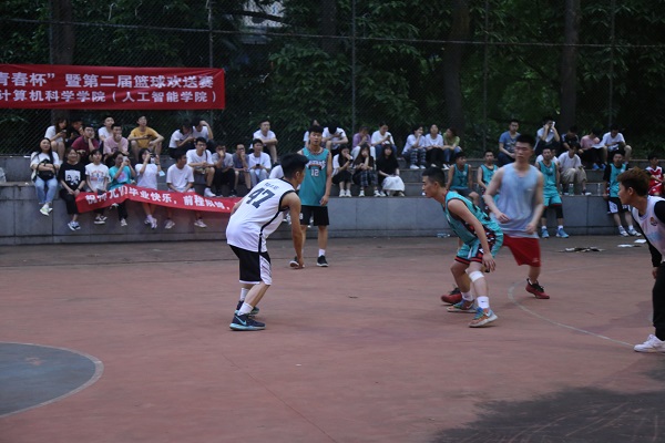 比赛于当天晚上7点开始,由钟孟圣、杜强、王元、彭宇、晏和江等员工为代表的毕业队对阵以现计科篮球队队员为代表的欢送队。比赛伊始,双方队员们迅速投入其中,赛场上的球员个个雄姿英发,你争我夺,一轮又一轮的进攻,动作潇洒,帅气利索。比赛进行得如火如荼,双方队员情绪高涨,现场观众也为他们欢呼呐喊。他们在场上演绎着精彩的篮球比赛,留下一段美好的大学时光。这场比赛并没有像以前一样严格地讲究技战术,更多是营造一种轻松愉悦的氛围。比赛最后,毕业联队率先获得100分,获得胜利!